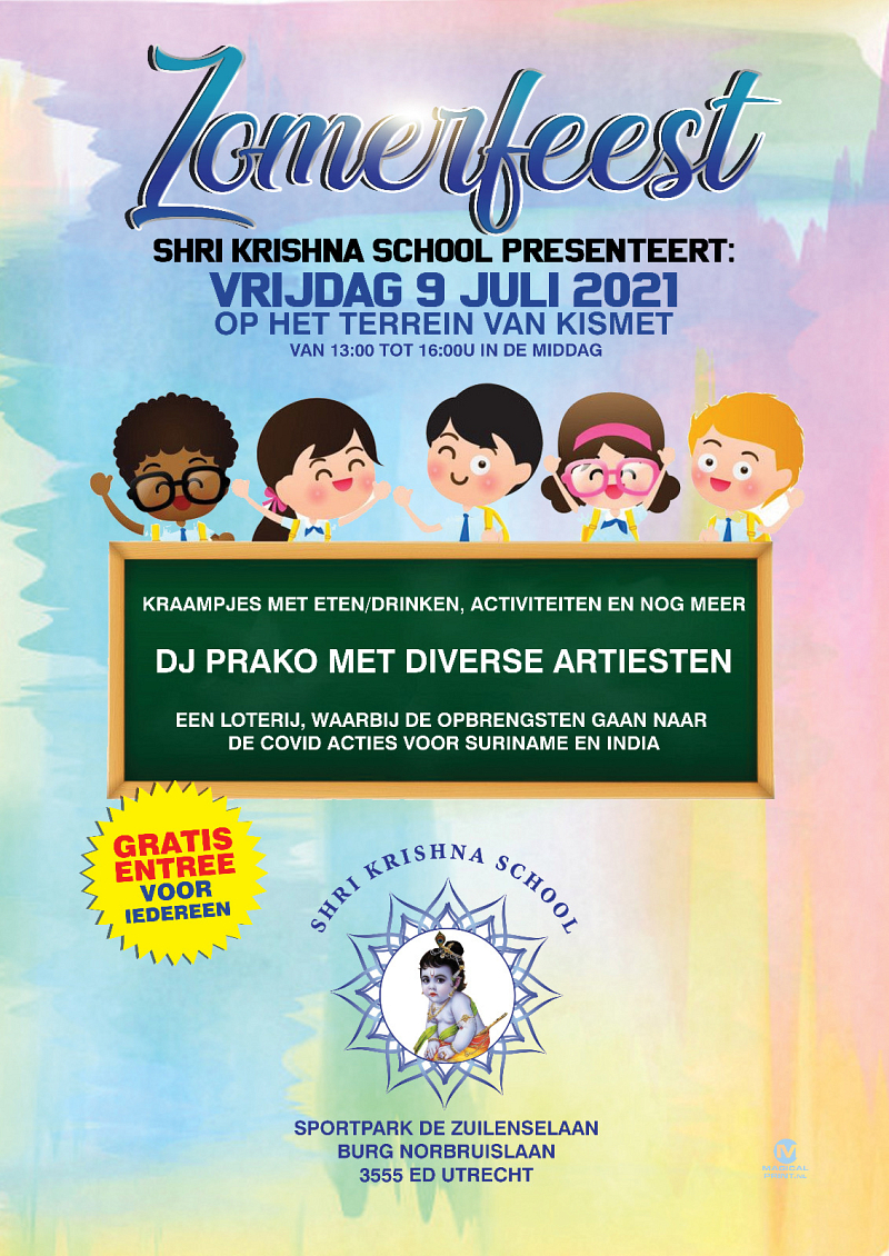 Actueel 07 juli 2021Zomerfeest Shri Krishna SchoolU bent van harte welkom op onze gratis zomerfeest van 13:00 - 16:00u op het terrein van Kismet met gastoptredens van o.a. Lady Sanjana en Shiwam Rajaram! DEEL: ‹ naar overzicht